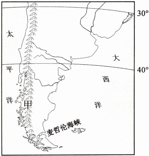 4. 在“某大洲37°S附近”可以看到的甲山脉是(