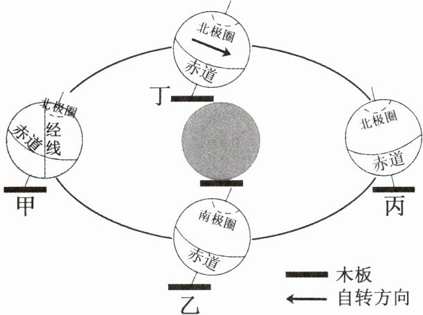 C. 按甲→丁→丙→乙的顺序沿着椭圆形轨道移动白色的乒乓球,演示的是地球的自转
