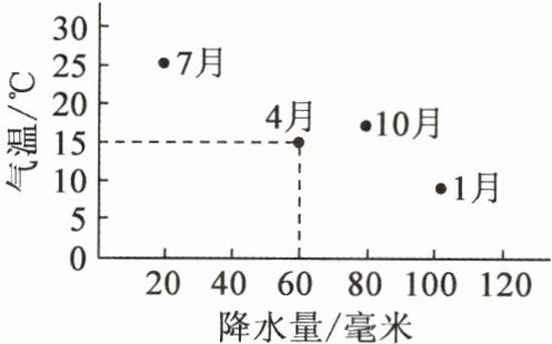 12. (综合思维)(四川内江中考)读世界某地气温和降水量统计图(如图所示,该地4月气温为15℃,降水量为60毫米),判断该地降水的季节分配情况为(