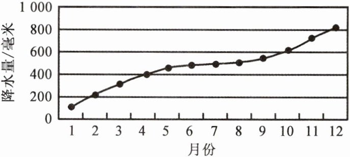 9. (综合思维)读北半球亚热带某地降水量逐月累计曲线图(逐月累计:将往月降水量的数值合并计算),该地降水量较少的季节是(