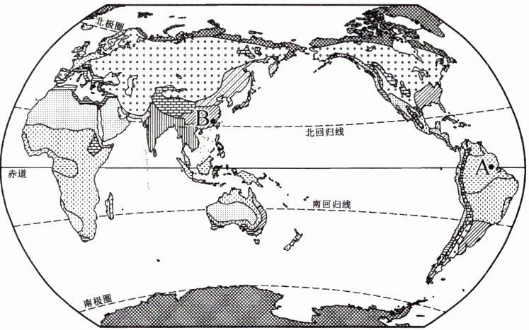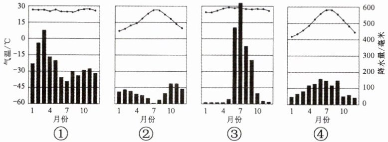 气候。(5)与图示A、B两地的气温和降水量情况相吻合的气候资料图分别是