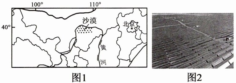 9. (人地协调观)(内蒙古包头中考)我国在某沙漠(位置见图1)修建起大规模的太阳能光伏电站(图2)。光伏发电替代部分煤炭火力发电,对遏制全球气候变暖做出的贡献是(