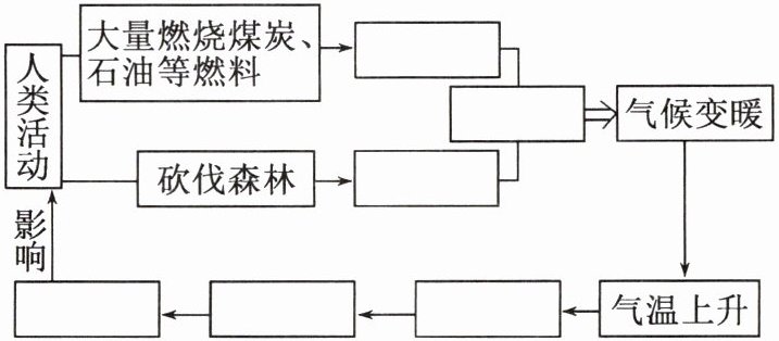 12. (人地协调观)气候对人类的生产生活有着很大影响,而人类活动反过来也会影响气候,请根据你的理解将下面的框图补充完整(填字母)。