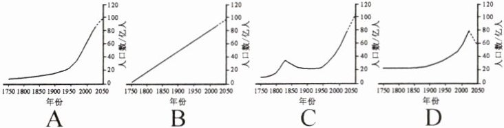 1. 下列各图中,能正确反映世界人口增长状况的是(