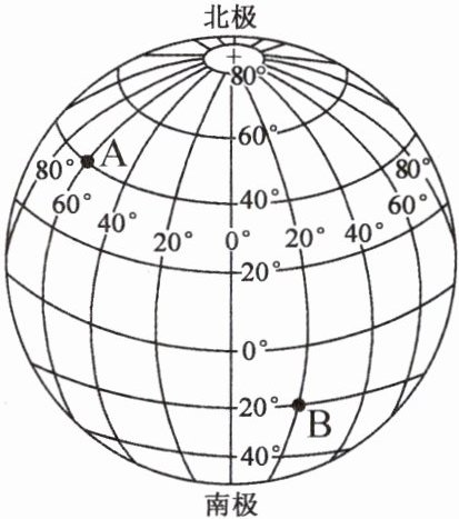 判断并写出图中 A、B 两支队伍的经纬度位置。