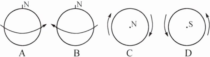 5. 下列四幅图中,地球自转方向表示正确的是(