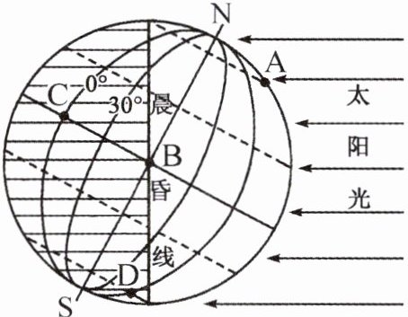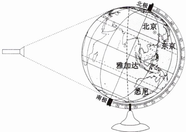下图示意某地理学习小组演示地球自转运动的实验,在光线较暗的地方用手电筒模拟太阳光照射地球,并自西向东拨动地球仪。据此完成 2~4 题。