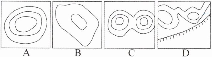 9. 下列等高线地形图中,与“土豆山”相符的是(