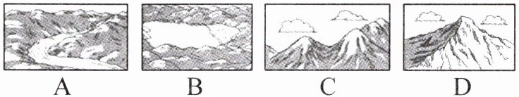 13. 下列素描图中,能够表示甲地所在地形部位的是(