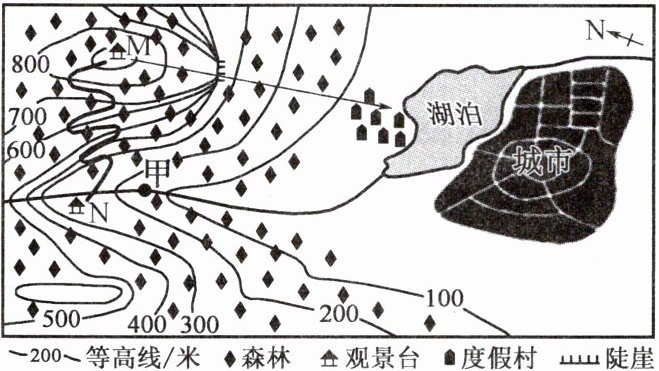 为进一步加强区域生态文明建设,我国南方地区某城市重新设计了某旅游景区的规划图。读图,完成 13~14 题。