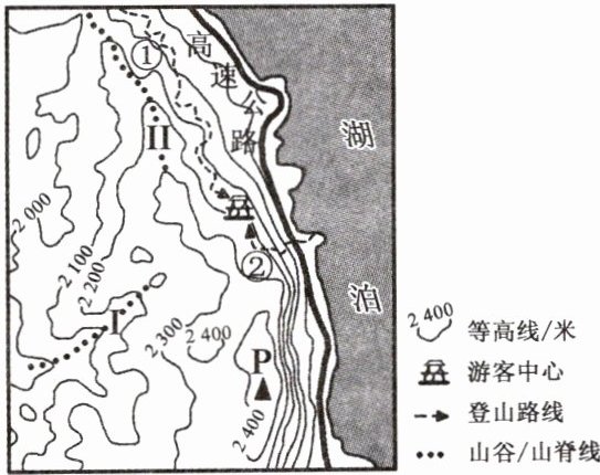 D.山峰 P 的海拔在 2 400 米以上