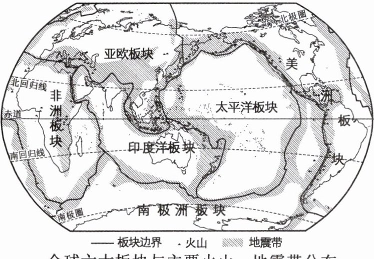 (全球六大板块与主要火山、地震带分布)