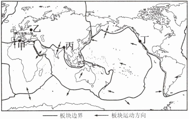 (时事热点)2025年3月28日,缅甸发生7.9级地震,震源深度30千米。此次地震造成重大人员伤亡,导致多个地区进入紧急状态。下图为全球六大板块与主要火山、地震带分布图,据此完成7~8题。