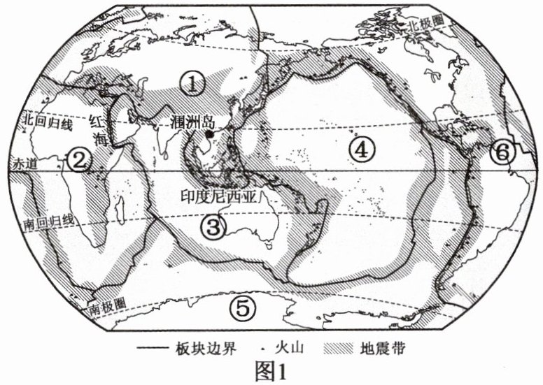 。(6)图1中印度尼西亚是一个群岛国,该国地处世界两大火山地震带交汇处,东部位于