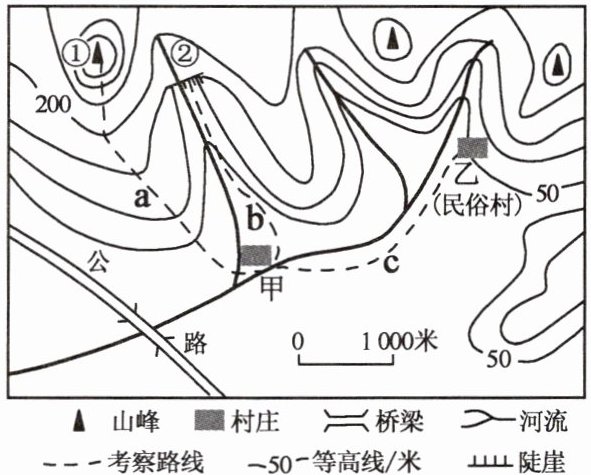 C. 若甲、乙两村之间的图上距离约 2.2 厘米,则两村之间的实地距离约 2 200 米