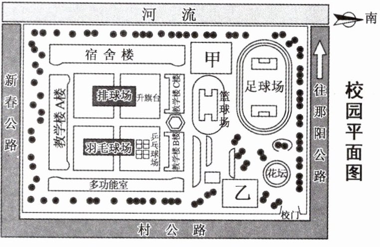 (4)甲 靠近足球场和篮球场,方便课后运动;背靠河流,环境较好;紧邻以前修建的宿舍楼,方便管理。