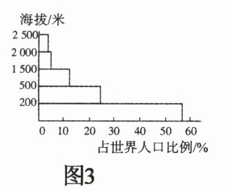 地区。(3)读图 3 可知,世界人口主要分布在