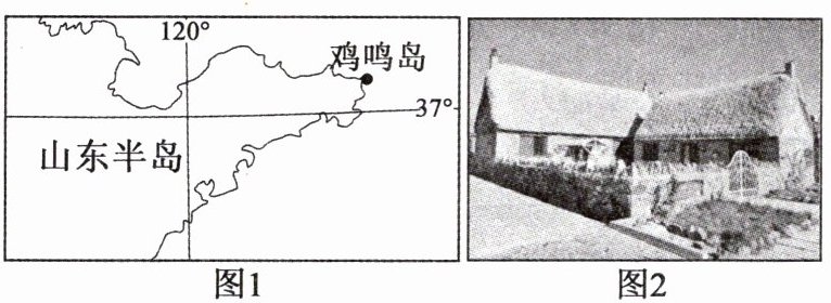 鸡鸣岛上的海草房是极富地方特色的生态民居。在原始石块或砖石块混合垒起的厚墙上,用经过海水长期浸泡后盐分较高的海草层层叠叠铺盖屋顶,朝向大海的那一面通常会罩上渔网,用石块等小件重物做坠子垂脚。20 世纪 90 年代以来,新建的海草房越来越少,旧海草房也大都被废弃。图 1 示意鸡鸣岛位置,图 2 示意海草房景观。据此完成 10~11 题。