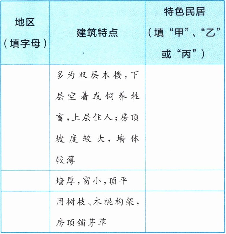 13. (项目式学习)世界各地的自然环境差异较大,聚落的形态也各不相同,一些特色民居往往能反映出一个地区聚落与自然环境的关系。某学校地理社团开展了以“自然环境与聚落形成、发展的关系”为主题的探究活动。请你跟着他们的探究过程,完成下列各题。
