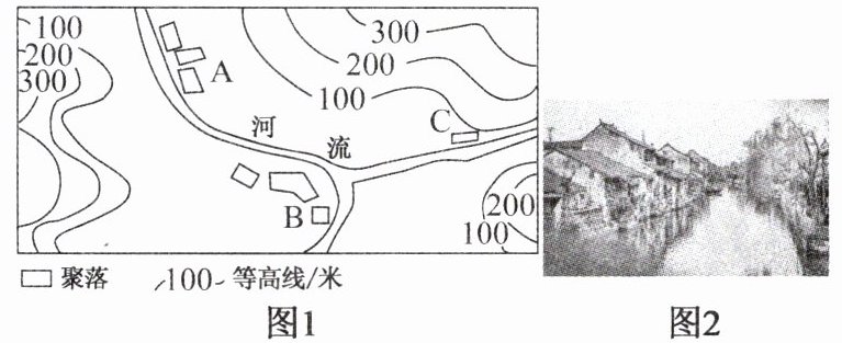 (1)从水源角度分析,图 1 中 A、B、C 三个聚落分布的共同特点是