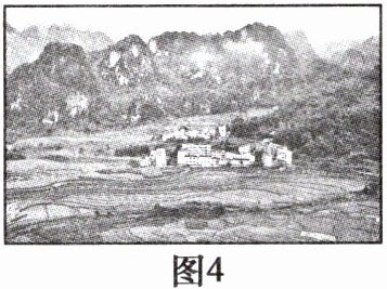 (填地形类型)地区。(3)图 3、图 4 分别为我国华北平原、云贵高原部分地区聚落分布景观。图