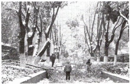 冻雨是在初冬或冬末春初常见的一种灾害性天气。2024年1月31日到2月5日,我国中东部地区经历了大范围雨雪冰冻天气,中国气象局1月31日启动重大气象灾害(雨雪冰冻)Ⅲ级应急响应。下图是武汉受冻雨天气影响后的关山公园一角。据此,完成12~13题。