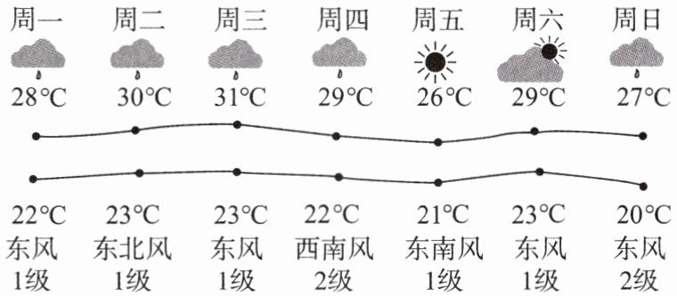 下图为某城市未来一周的天气预报图,据此完成3~4题。