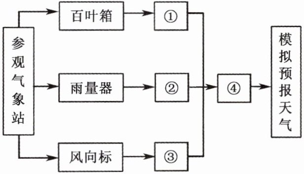 (1)同学们参观气象站后想要模拟预报天气,需要完成以下步骤。结合下图,将正确的字母填写在对应的横线上。