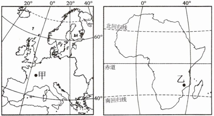 读欧洲西部、非洲示意图和甲、乙两地的气候资料图,完成8~9题。