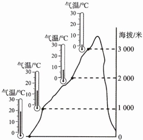 ,海拔每升高1000米气温下降约6