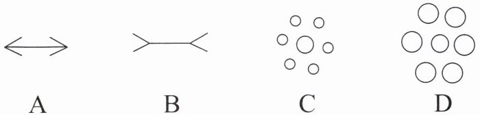 9. 观察下图:A 和 B 两图中间的线段一样长吗?用直尺量一量,结果是______。C、D 两图中心的圆一样大吗?量一量,结果是______。做完这两个观察实验,你有什么体会?______。