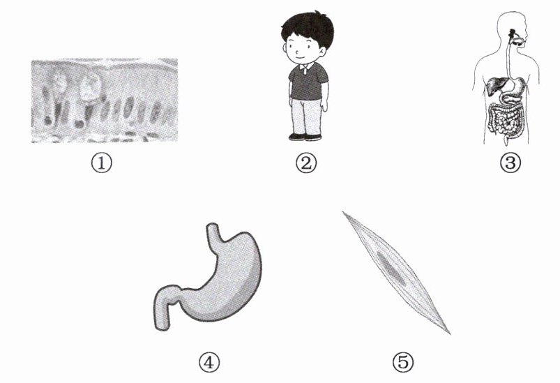 C 【提示】题图中,①是肌肉组织,②是人体,③是消化系统,④是胃,⑤是肌细胞。