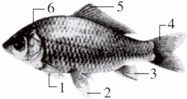 (3)4尾鳍 5背鳍 1胸鳍 2腹鳍 3臀鳍 4尾鳍