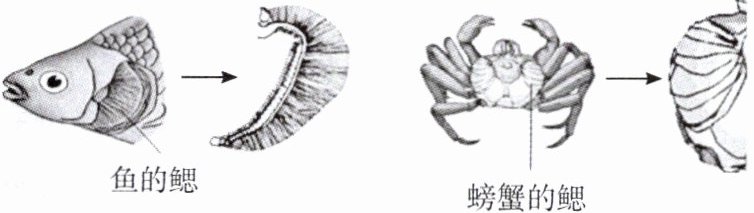 (2) 鱼离开水后,鳃丝会粘连,鳃与氧气的接触面积______(填“增大”或“减小”),故鱼会窒息而死;螃蟹离开水后,鳃与氧气的接触面积不变,故还可以存活一段时间。
