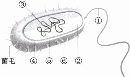 细菌的基本结构:[ ]______、[ ]______、[ ]______,有[ ]______,却没有______,属于______生物;有些细菌细胞壁外有[ ]______(保护作用),有些细菌有[ ]______(用于在水中游动)。大多数细菌没有______,不能进行光合作用。