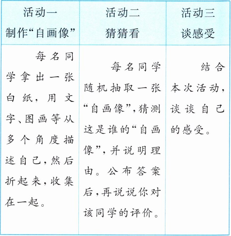 7. 课堂上,老师带领同学们开展了“自画像”活动。