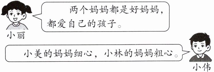 支持小丽的观点。父母对子女的爱的表达方式是各不相同的。小美妈妈的爱温暖细腻,她更关注小美的身体健康。小林妈妈的爱富有理智,她更在意培养小林自立自强的精神。她们都在用自己的方式爱护孩子。