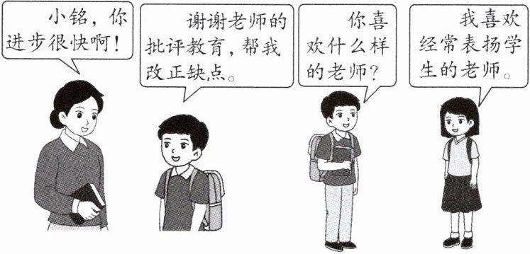 (2)①我们要真诚接受老师的引领和指导,发自内心地尊重老师,善于从老师的教诲中汲取成长的营养。②我们要正确对待老师的表扬和批评。老师的表扬意味着肯定、鼓励和期待,激励我们更好地学习和发展。对待老师的表扬,我们应戒骄戒躁、再接再厉,争取做得更好。老师的批评意味着关心、提醒和劝诫,帮助我们反省自己、完善自我。③我们要尊重并适应不同风格的老师。