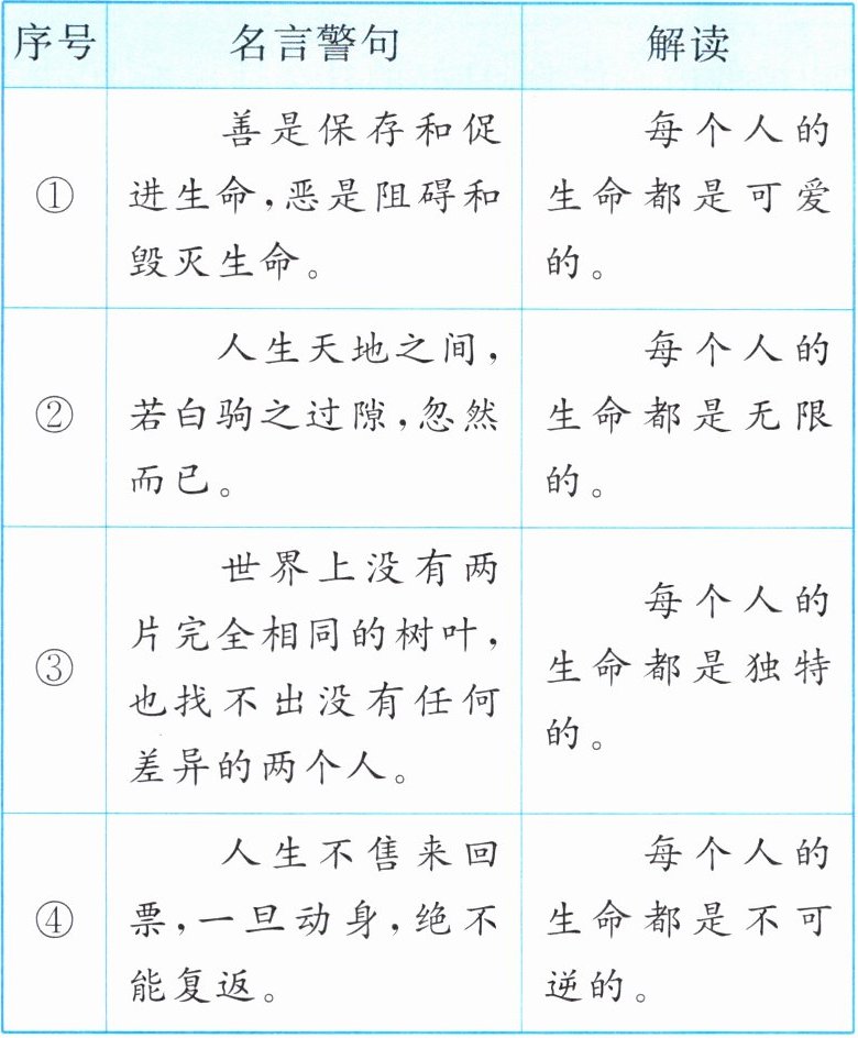 |④|人生不售来回票,一旦动身,绝不能复返。|每个人的生命都是不可逆的。|