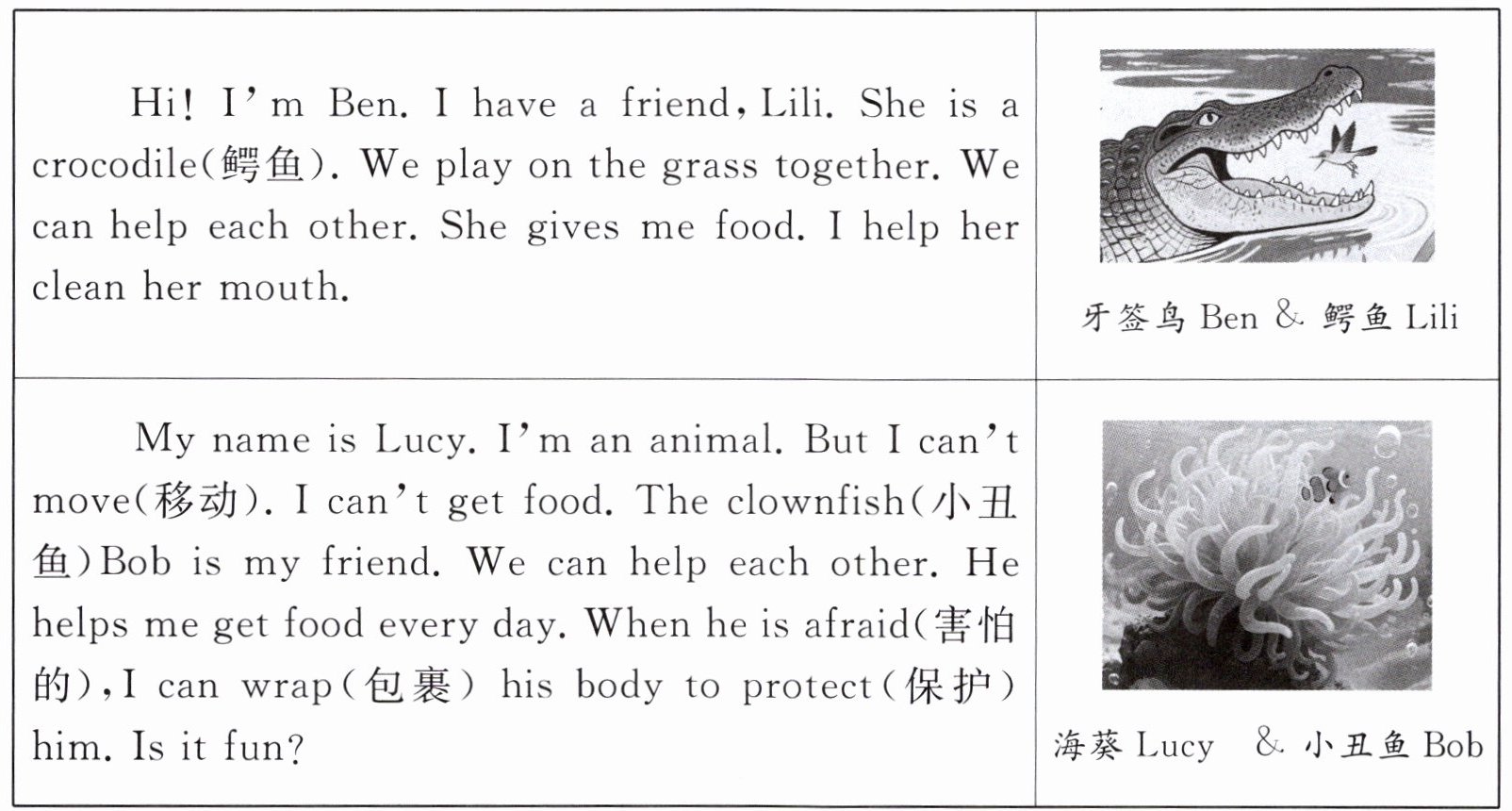 五、【跨学科】(不同物种通过互利共生,建立起独特的合作关系。)任务型阅读。