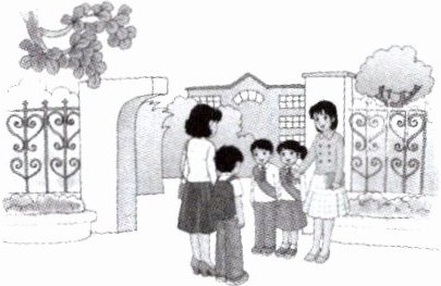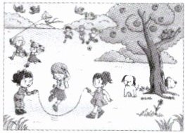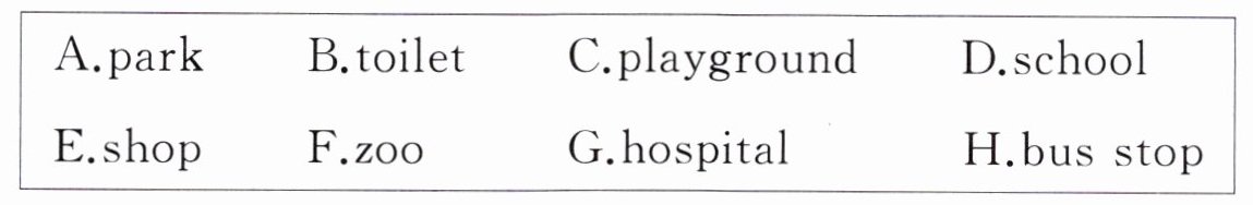 (让我们跟随 Mike 一起认识社区里的各个场所。)看图,从方框里选择正确的选项,补全下列句子。