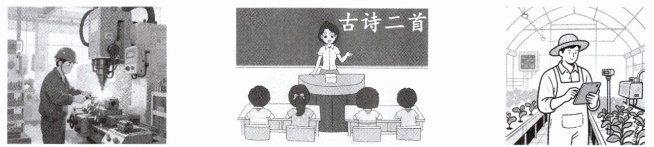 二、(图中人物的职业是什么?)根据图片与单词提示,写出对应的职业名称。