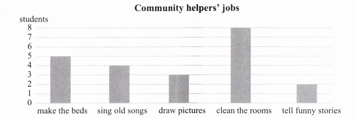 Community helpers’ jobs:Reading stories;Taking photos;Doing hair cut;Cooking food;Cleaning rooms; Making the beds.