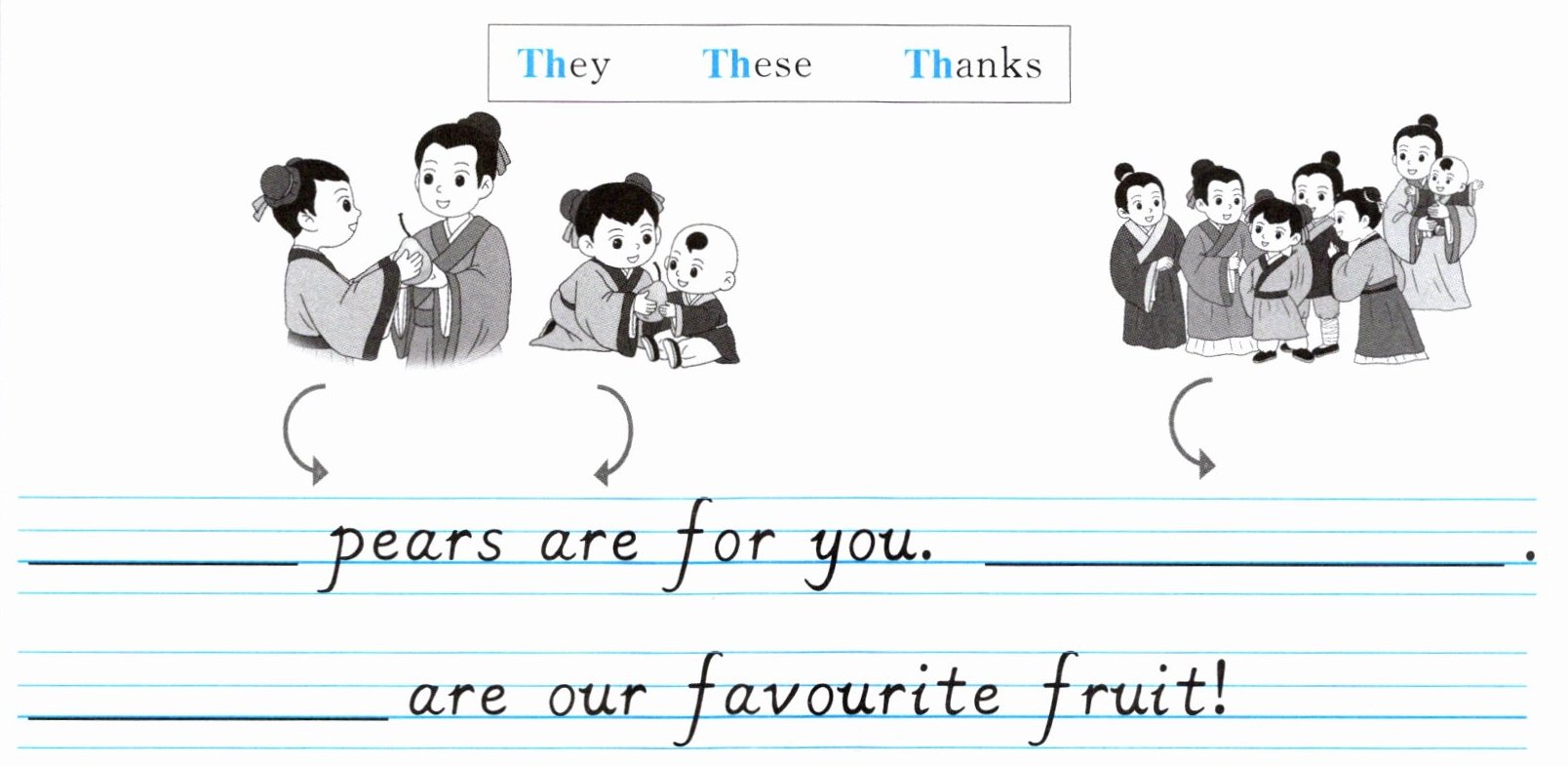 一、【传统文化】看图,读一读,把句子补充完整。