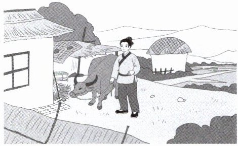 白天放牛,晚上就和牛睡在一起,那头牛跟他形影不离,人们管他叫牛郎。