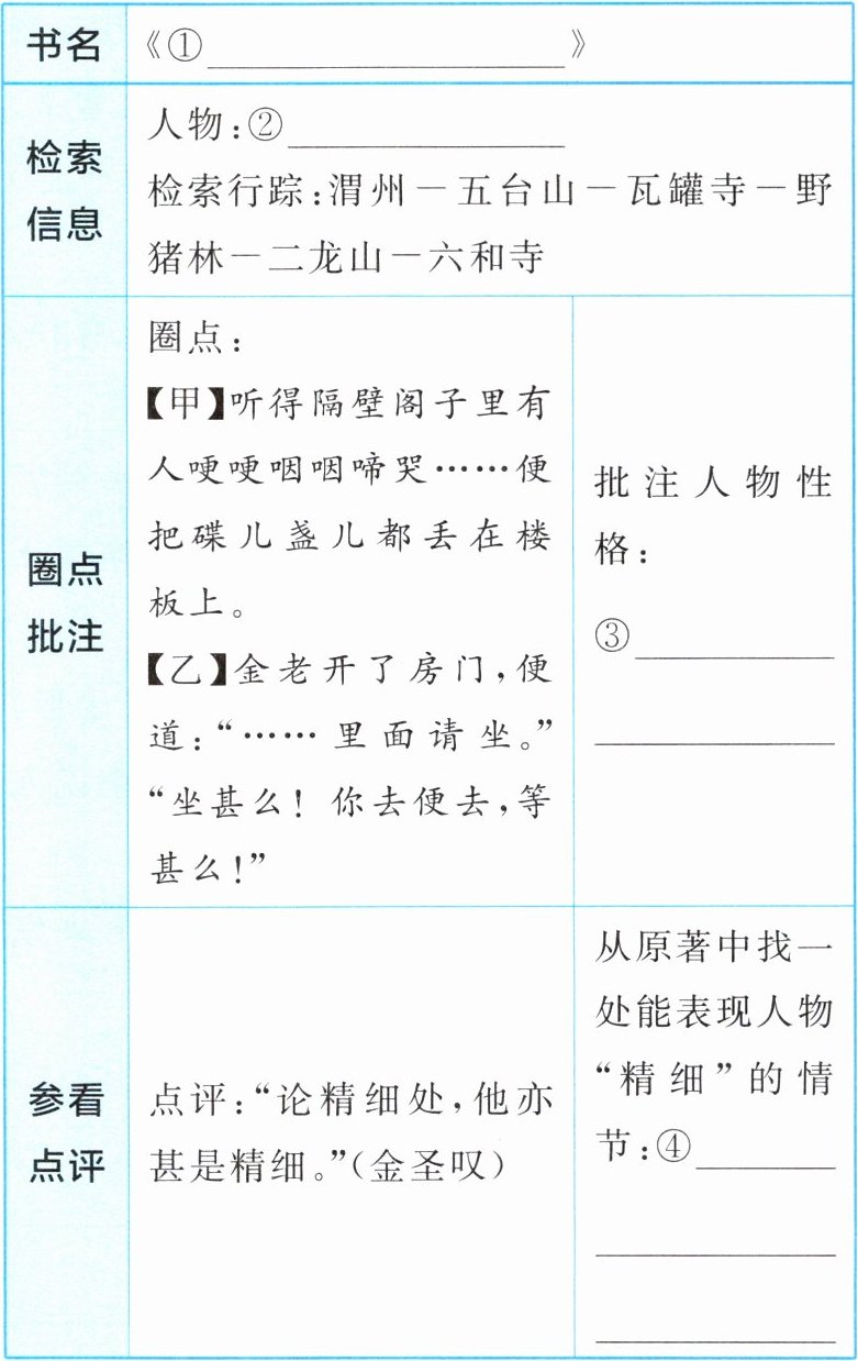①水浒传 ②鲁智深/鲁达/鲁提辖/花和尚 ③焦躁急躁/豪爽爽快/粗鲁鲁莽