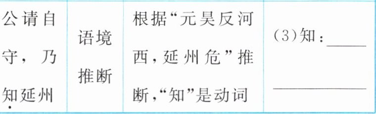 |公请自守,乃知延州|语境推断|根据“元昊反河西,延州危”推断,“知”是动词|(3)知:____|