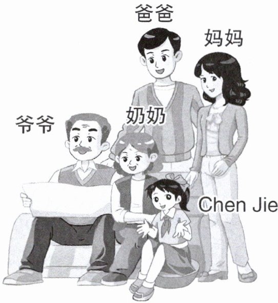 三、(Chen Jie 向 Amy 逐一介绍自己的家庭成员。)看图,判断下列句子的正(√)误(×)。