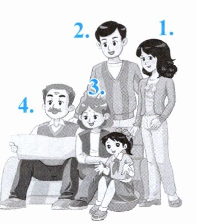 A. Mum B. grandma C. Dad D. grandpa E. family