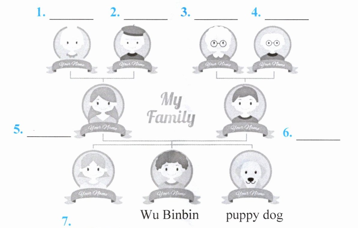一、(同学们带着全家福来课堂,介绍自己的家人。)给下列人物选择正确的单词。